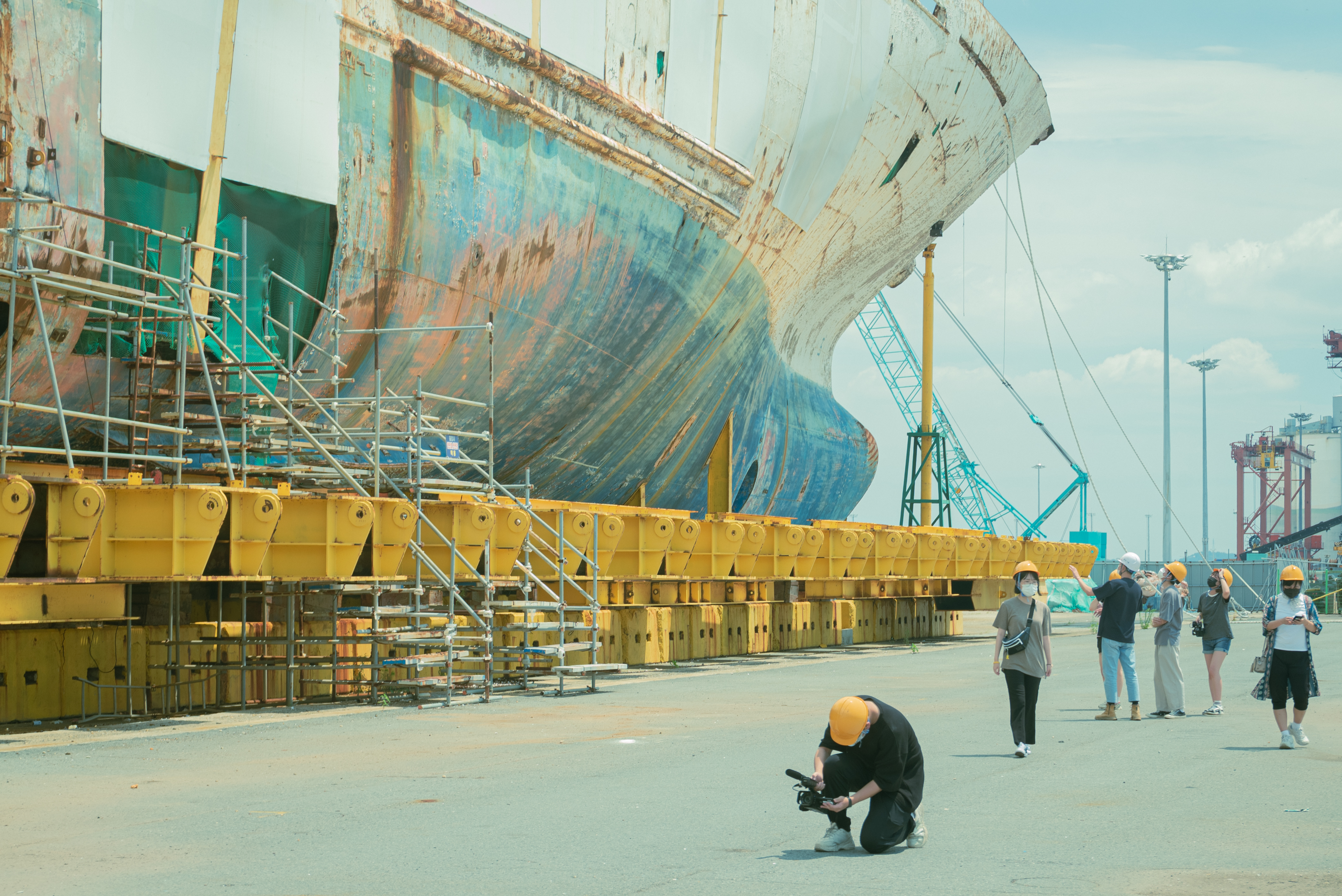 간단한 안내를 받고 세월호 선체를 향해 다가갔다. 그 뜨거운 태양빛을 가릴만큼 세월호 선체는 굉장한 크기를 가지고 있었다. 그렇게 선체와 가까워질수록 왠지 모를 소름이 돋았다. 지금 생각해 보면 아마 그 소름은 공허와 허무가 주는 서늘함이었다. 세월호 선체의 모습은 선 체가 바닷속에서 얼마나 오랜 시간있었는지 명확히 보여주고 있었다. 조개껍데기와 녹슬어 구멍 난 부분들,색이 바랜 페인트와 글씨들. 말이 없이 한참을 바라보았다.나뿐만 아니라 팀원들대부분이 한동안 말 없이 바라만 보았다. 말을 안 한 게 아니라 실로 그 누구도 쉽사리 입을 뗄 수 없었다.